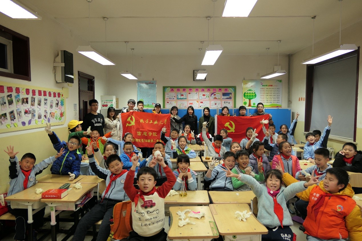 为践行研究生党员严格以党章要求自己,服务社会,11月29日,信息学院电信研究生18级第二党支部在张梅老师的带领下前往石景山实验小学,为四年级的小学生带去了一节生动有趣的化学课。这也是支部与石景山实验小学建立“共建基地”以来,开展“科技进课堂”专题共建的第六次活动。