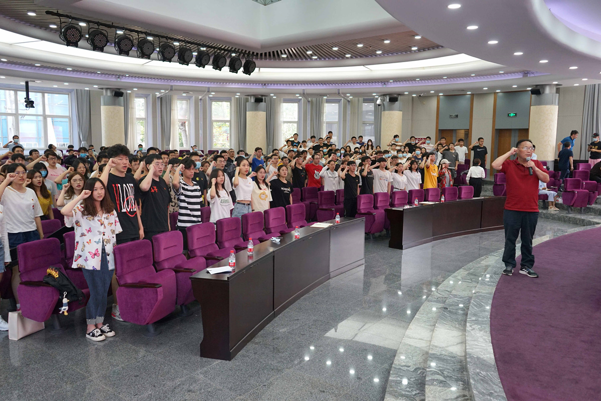 学院党委纪检委员、实验中心教师第一党支部书记赵徐森同志领誓,全体新党员面向党旗,庄严宣誓,为本次党史学习教育圆满落下了帷幕。