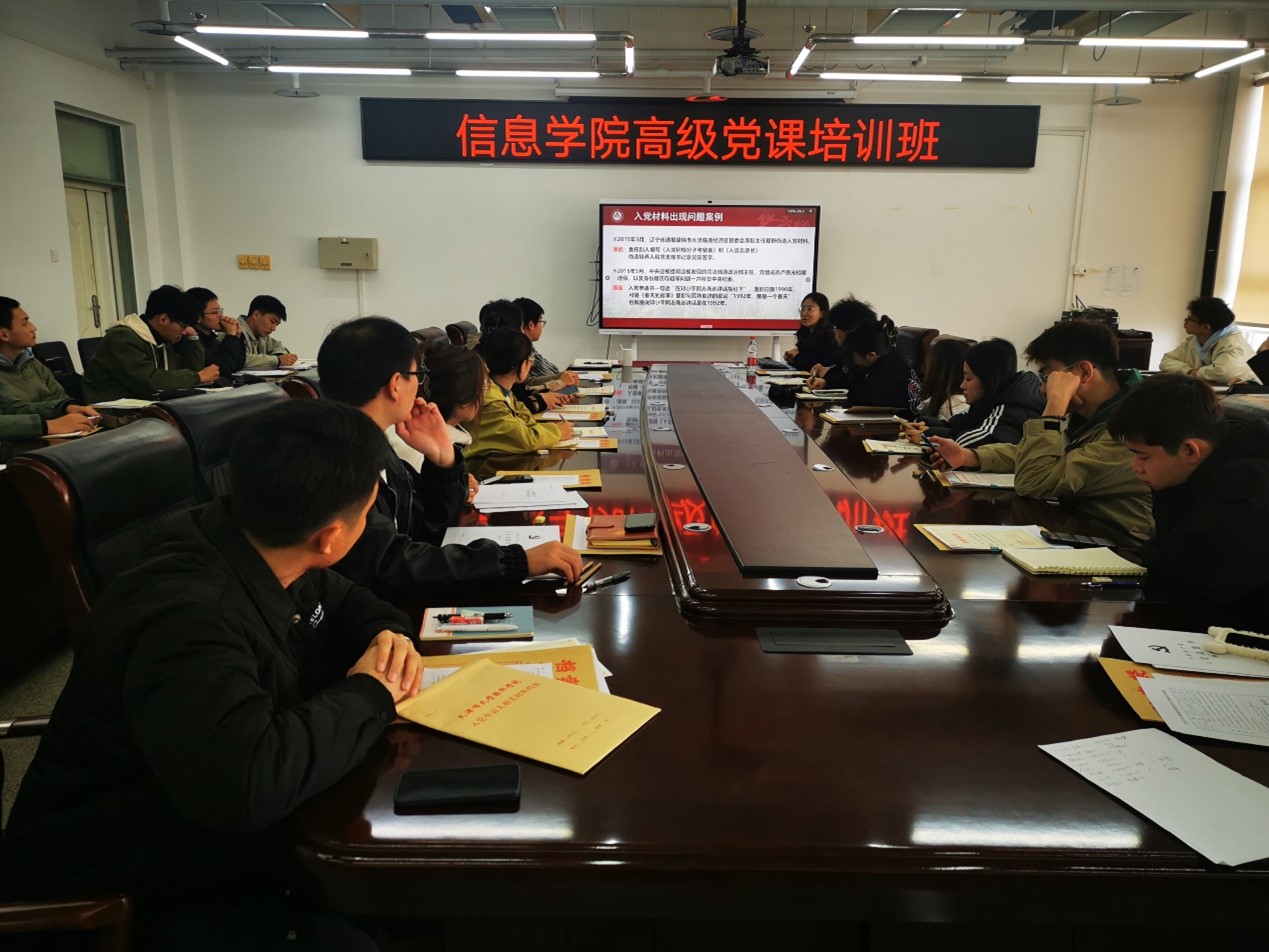 随后,信息学院党务秘书毕珊珊、李宗扬围绕发展党员工作流程以及文书撰写内容分别进行讲解,重点讲述了入党材料的填写规范。