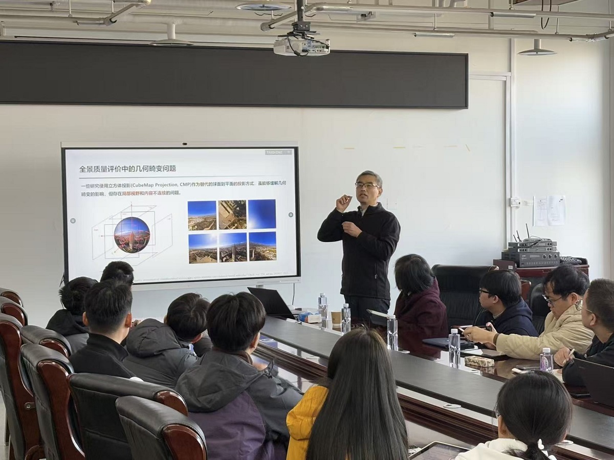 2025年11月4日上午,beat365在线唯一官网邀请北京理工大学刘利雄副教授作了题为“面向全景媒体的视觉质量评价”的学术讲座。讲座由计算机技术责任教授张永梅老师主持,beat365在线唯一官网数媒系主任博士生导师蔡兴泉教授以及研究生共计50余人参加了此次讲座。