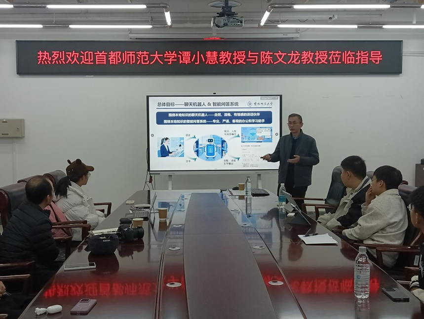 2025年11月7日下午,beat365在线唯一官网邀请首都师范大学陈文龙教授、谭小慧教授来校做学术交流。交流活动在瀚学楼1014举行,由人工智能领域责任教授刘杰老师主持。beat365在线唯一官网肖彬副教授、张晴博士以及研究生共计50余人参加了此次学术交流活动。