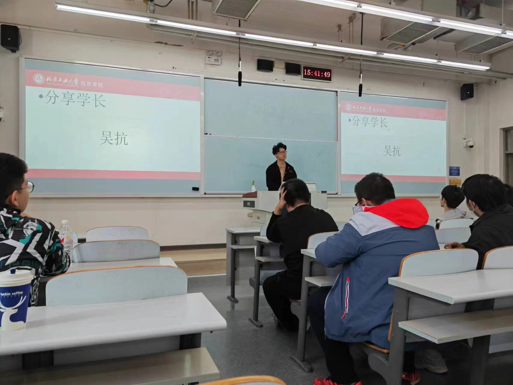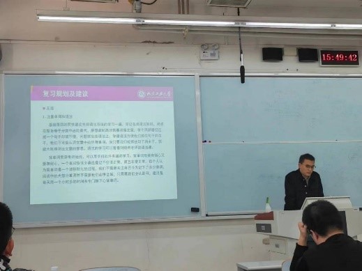 五位同学经验分享完毕,同学们与他们进行了积极交流。三年级同学重点对各个学校的专业课内容进行细节的咨询,并针对自己拟报考的学校征求了五位同学的相关建议;同时他们还就考研资料进行了分享。二年级和一年级的同学对学校的报考流程进行了详细的咨询,对考研的内容和时间节点有所理解,为进行未来规划提供了更明确的目标和方向。