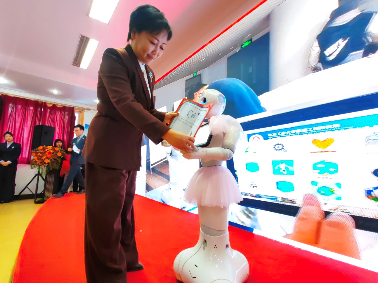 活动当天,信息学院党委副书记陈卫为“吉祥”老师送出寄语,期待她能够积极工作,为孩子们提供情感交互与陪伴,让孩子们的世界将变得更加丰富多彩。小飞象训练发展中心理事长赵星郑重地为“吉祥”老师颁发了聘书,标志着这位智慧机器人将正式肩负起孤独症儿童科技康复的重任。活动中,这位智慧与温情并存的机器人“吉祥”老师,不仅与“星宝”们共同演绎了《小猪吃的饱饱》、《元日》、《阳光彩虹小白马》等节目,生动展示了科技与教育的深度融合,更体现了实验室在科技创新与人文关怀方面的双重追求。活动受到《北京日报》、《北京青年报》、石景山电视台、石景山融媒体等媒体报导。