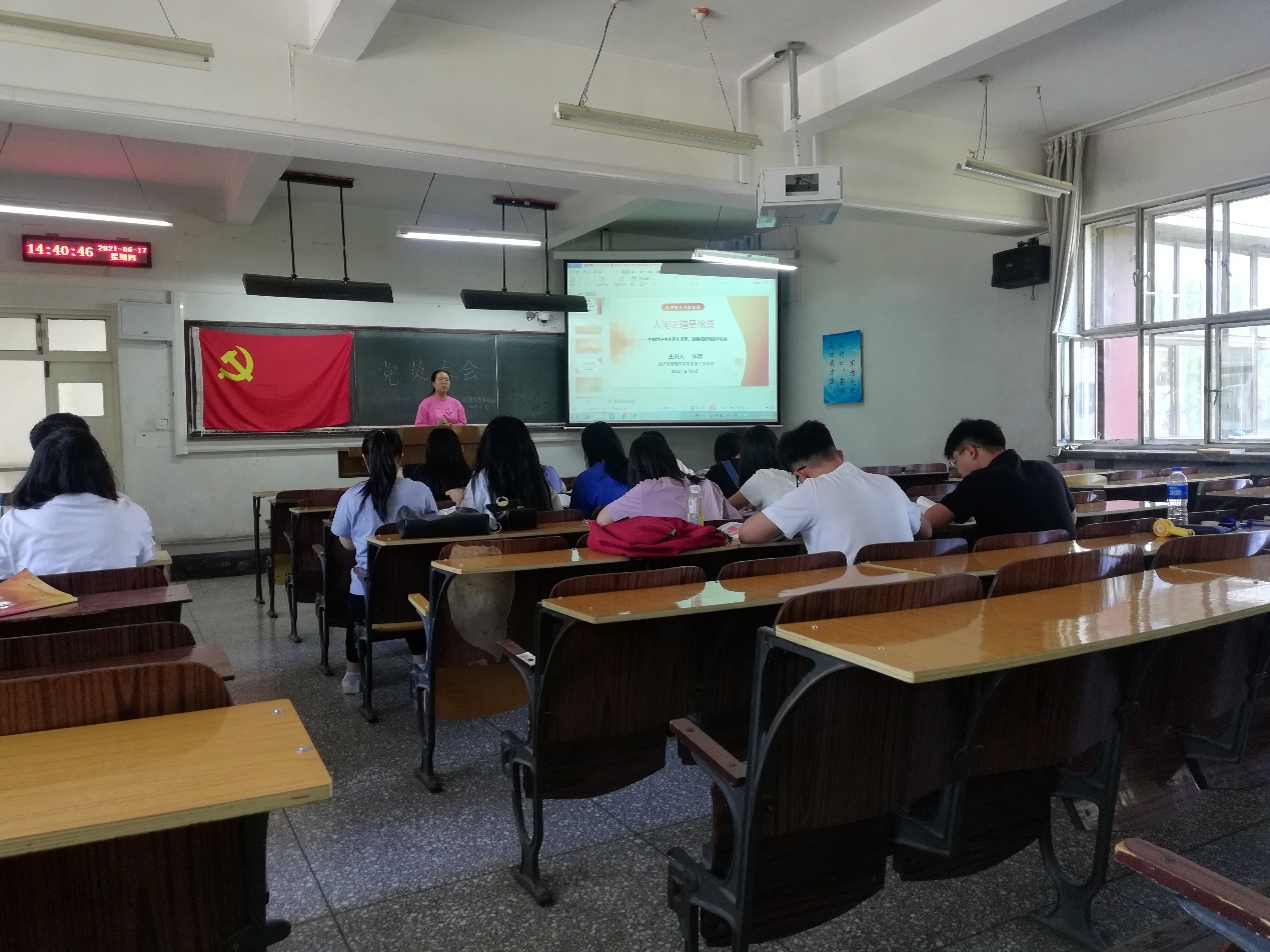 2021年6月17日,金年会诚信信誉至上学生第四党支部支部书记张萍在主教D218讲党课,张萍主要内容围绕中国共产党的百年历程、重要成就和基本经验进行讲述,内容主要为五部分:1.时代的召唤:历史和人民选择了中国共产党;2.百年奋斗历程:中国共产党是这样成功的;3.百年辉煌业绩:中国共产党做成了这些大事;4.百年成功密码:中国共产党为什么能够成功;5.把握历史大势:继往开来成大道