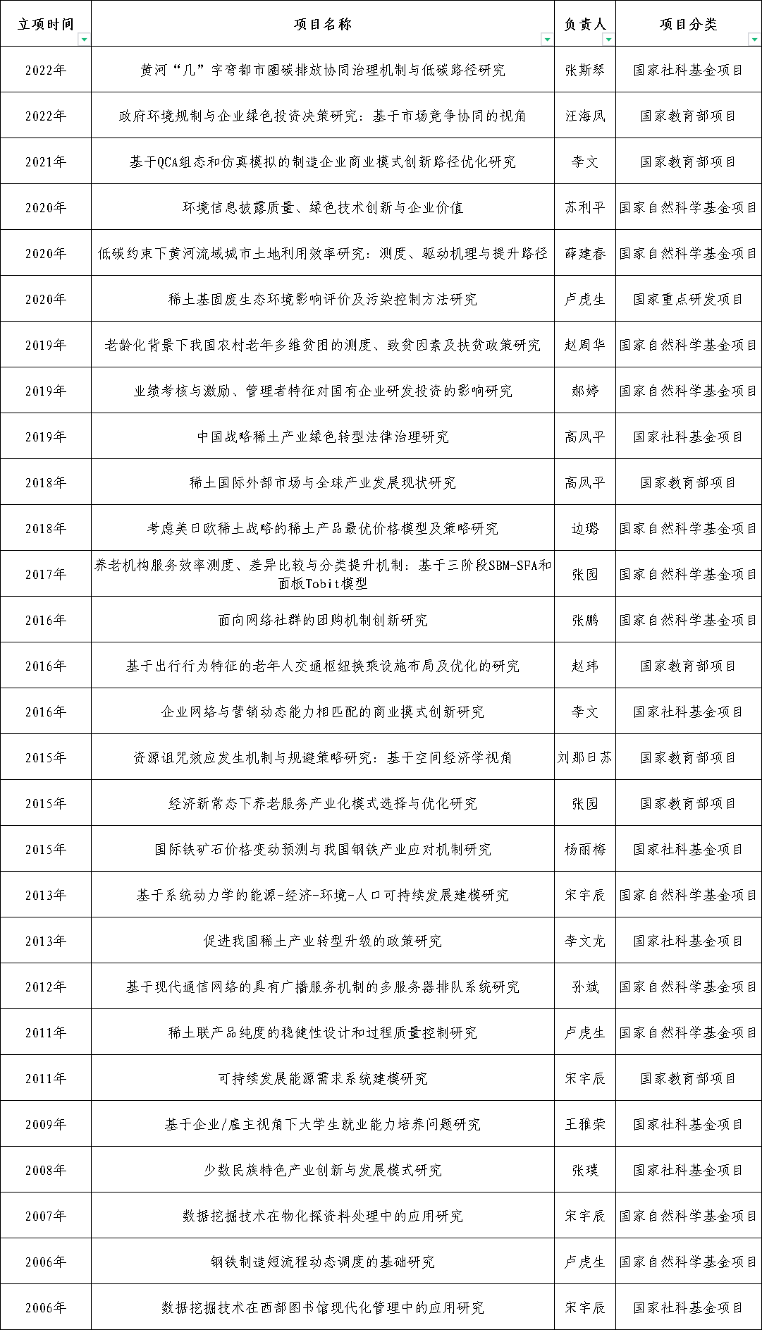 学院教师获批国家级项目一览表