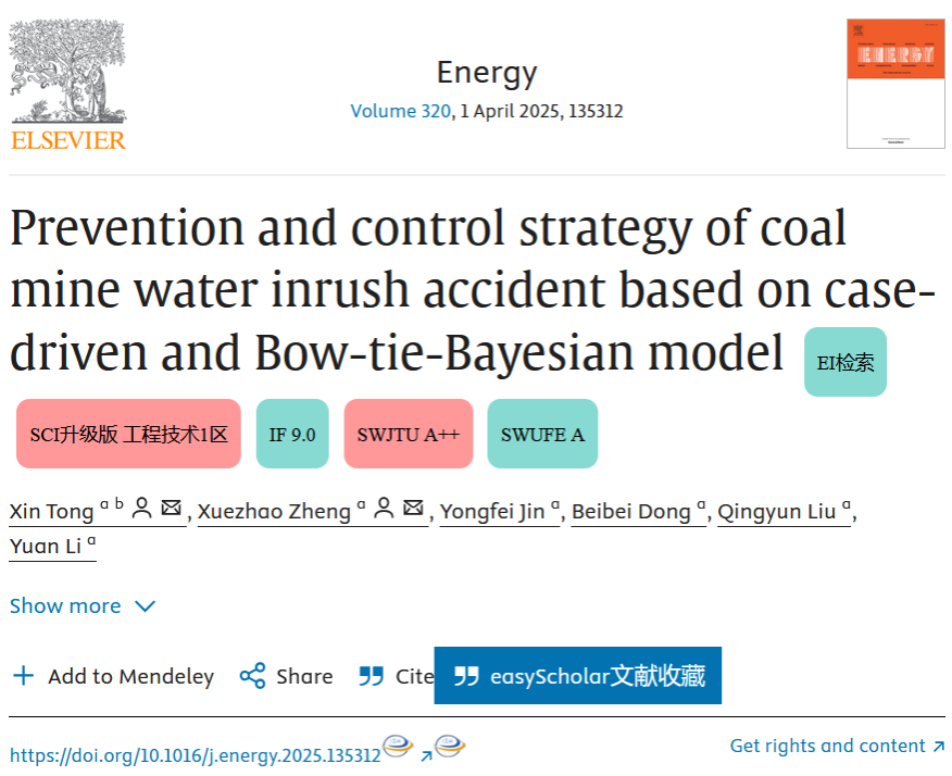 近日,金年会诚信信誉至上青年教师童鑫与其合作者正式在国际能源科学权威期刊《Energy》上发表了题为“Prevention and control strategy of coal mine water inrush accident based on case-driven and Bow-tie-Bayesian model”的研究论文,童鑫为该论文的第一作者兼通讯作者。