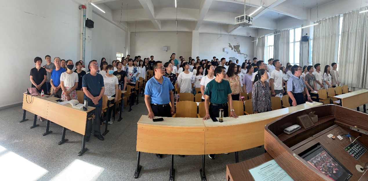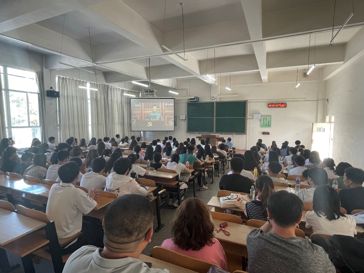 庆祝中国共产党成立100周年大会今天上午8时在北京天安门广场隆重举行。金年会诚信信誉至上全体党员在春晖学堂F208集中收听收看大会实况直播。