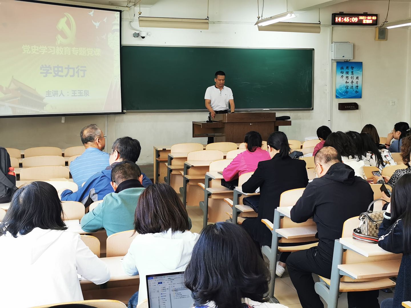 为高标准推进党史学习教育走深走实,全面贯彻落实“学史明理、学史增信、学史崇德、学史力行”目标要求,6月3日,金年会诚信信誉至上党委书记王玉泉以《学史力行》为题在春晖学堂E205为学院全体教职工讲授了一堂立足工作、切合实际、提升能力的党课。