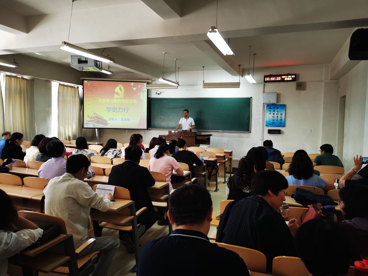 王书记从高等学校教师学习党史的意义和如何学史力行两个方面进行了阐述。同时要求每一名党员要提高政治站位、统一思想认识,提高学习质量、扩大学习覆盖面和注重实际效果、解决实际问题。
