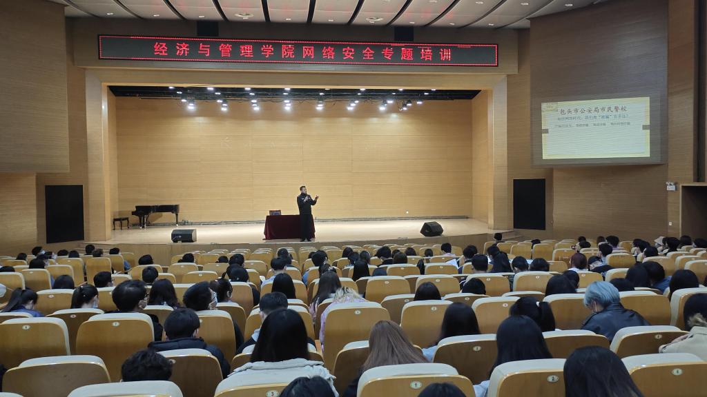 为进一步提高学生安全防范意识, 3月18日下午,金年会诚信信誉至上“预防电信诈骗网络安全知识讲座”于音乐厅举行,讲座特邀包头市公安局昆都仑区公安分局,反诈骗联盟成员贾立警官进行防范诈骗知识讲解,学院各专业年级班委及宿舍长积极响应参加。