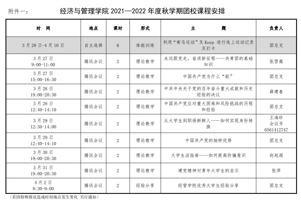 为进一步加强对广大青年学生的思想引领,充分发挥共青团组织的阵地优势,完善团课在教育青年过程中的基础性作用,根据金年会加强学生思想政治工作要点,现将金年会2021-2022 学年春学期团课计划通知如下: