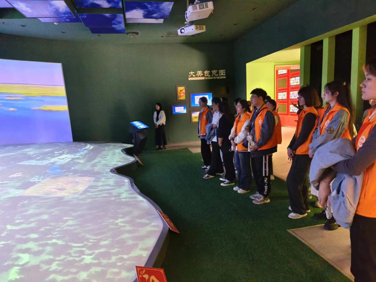 在一楼展厅参观过程中,青马班学员们认真听取生态馆工作人员的讲解,了解包头市的生态环境、生物多样性保护以及生态文明建设取得的成果。随后学员们来到二楼体验了以生态为主题的垃圾分类、保卫蓝天、节约用水等方面的互动设施。通过实物展示、图文资料和互动体验等多种形式,学员们对包头市的生态环境有了更直观、更深入的认识。