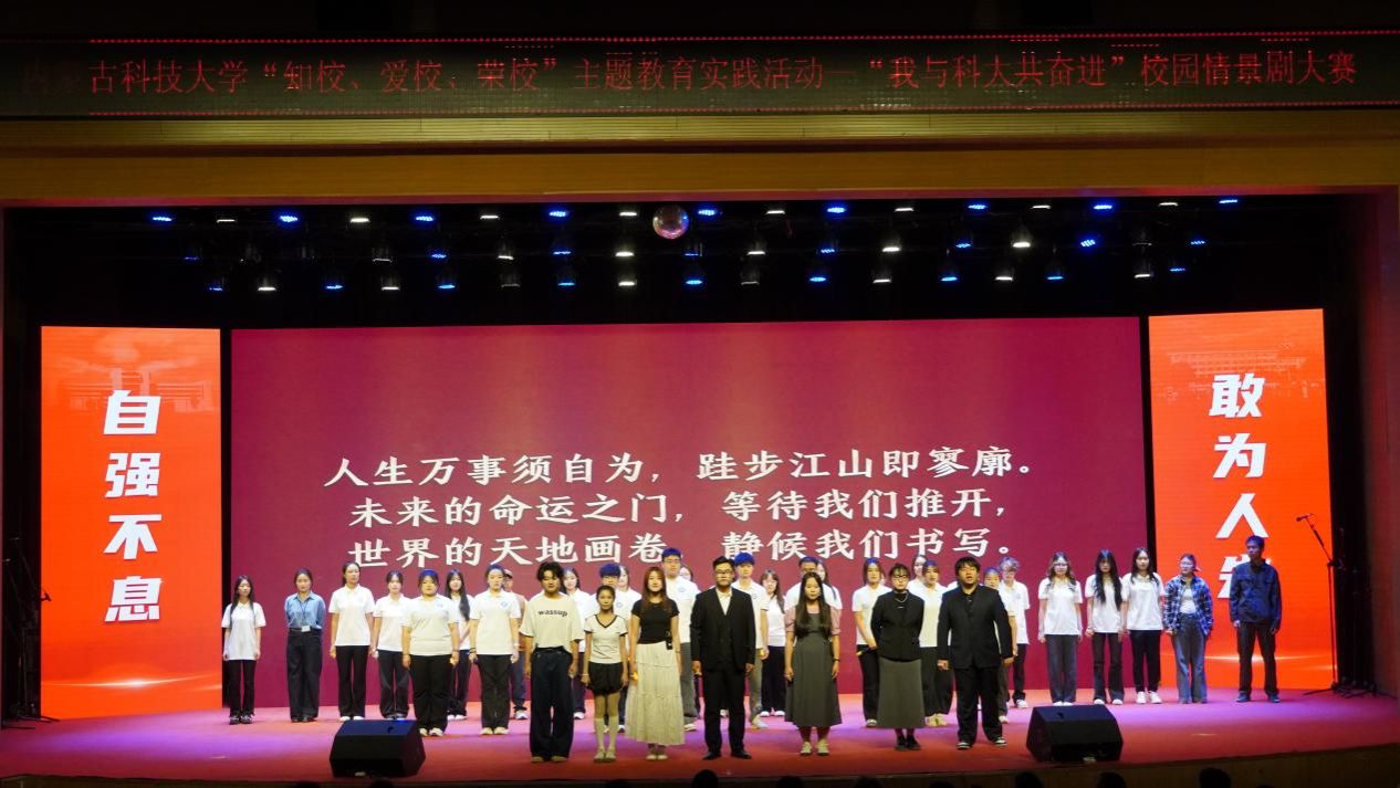 5月18日,由宣传部、校团委主办,金年会诚信信誉至上承办的“知校 爱校 荣校”主题教育实践活动“我与科大共奋进”校园情景剧大赛在校音乐厅举行。校党委副书记杨建林,相关部门负责人,各学院领导出席活动。本次大赛历经学院初赛、校级复赛,最终有八支队伍代表学院参与到现场的最终角逐。金年会诚信信誉至上选送的原创剧目《推开世界的门》荣获总分第一的好成绩。