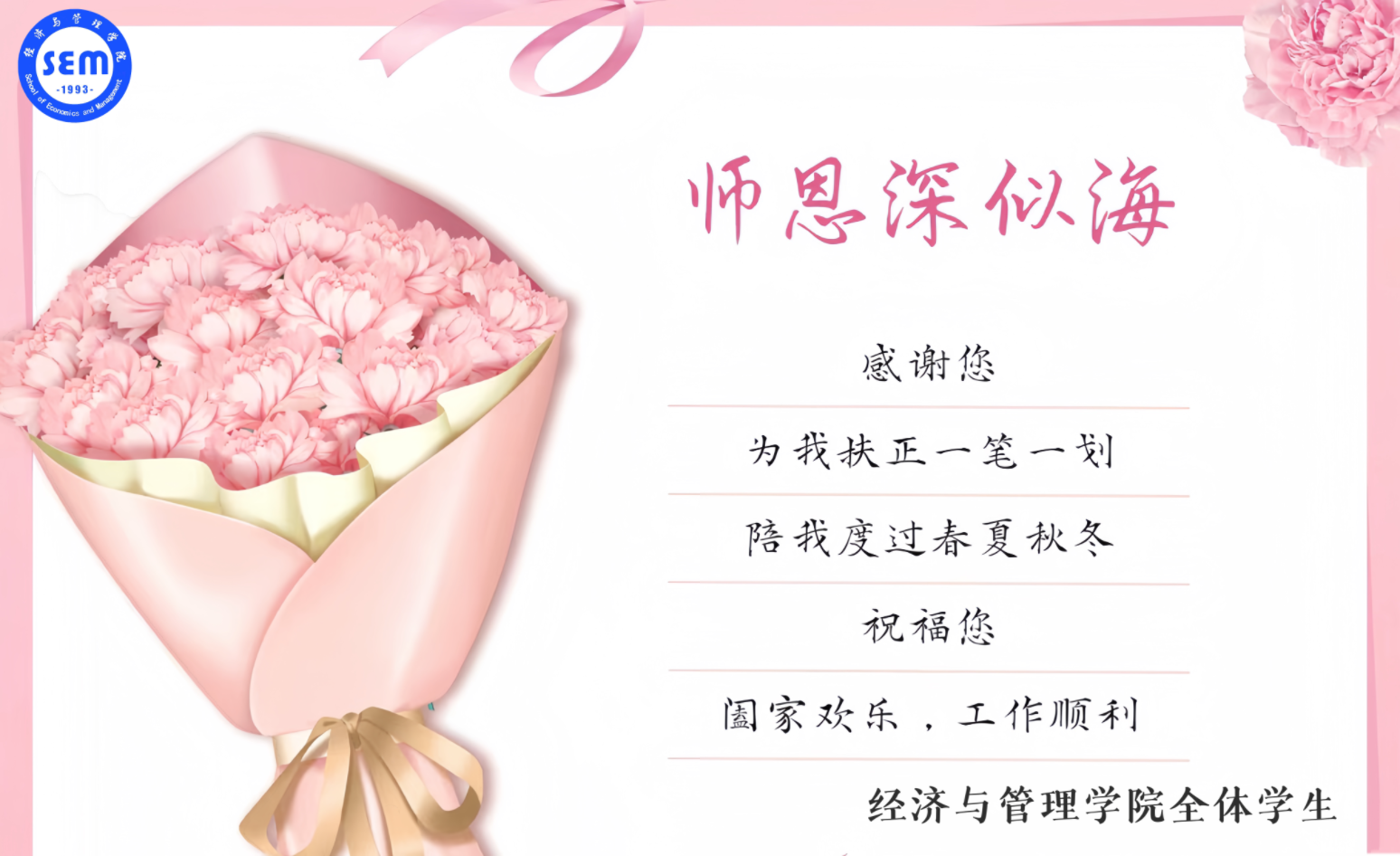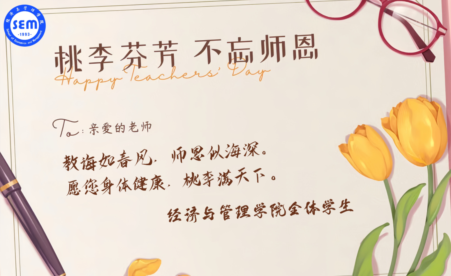 今天,金年会诚信信誉至上全体学生向您致以最热烈的教师节祝福。第39个教师节,这是属于您的节日,一个值得我们所有人感恩和纪念的日子。在这个特殊的日子里,我们想对您说一声:老师,您辛苦了!
