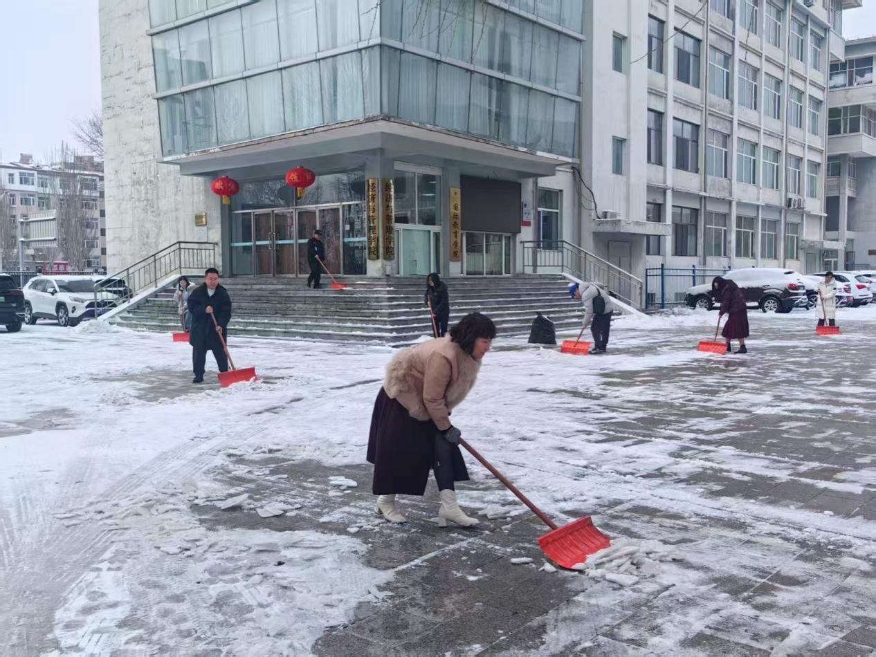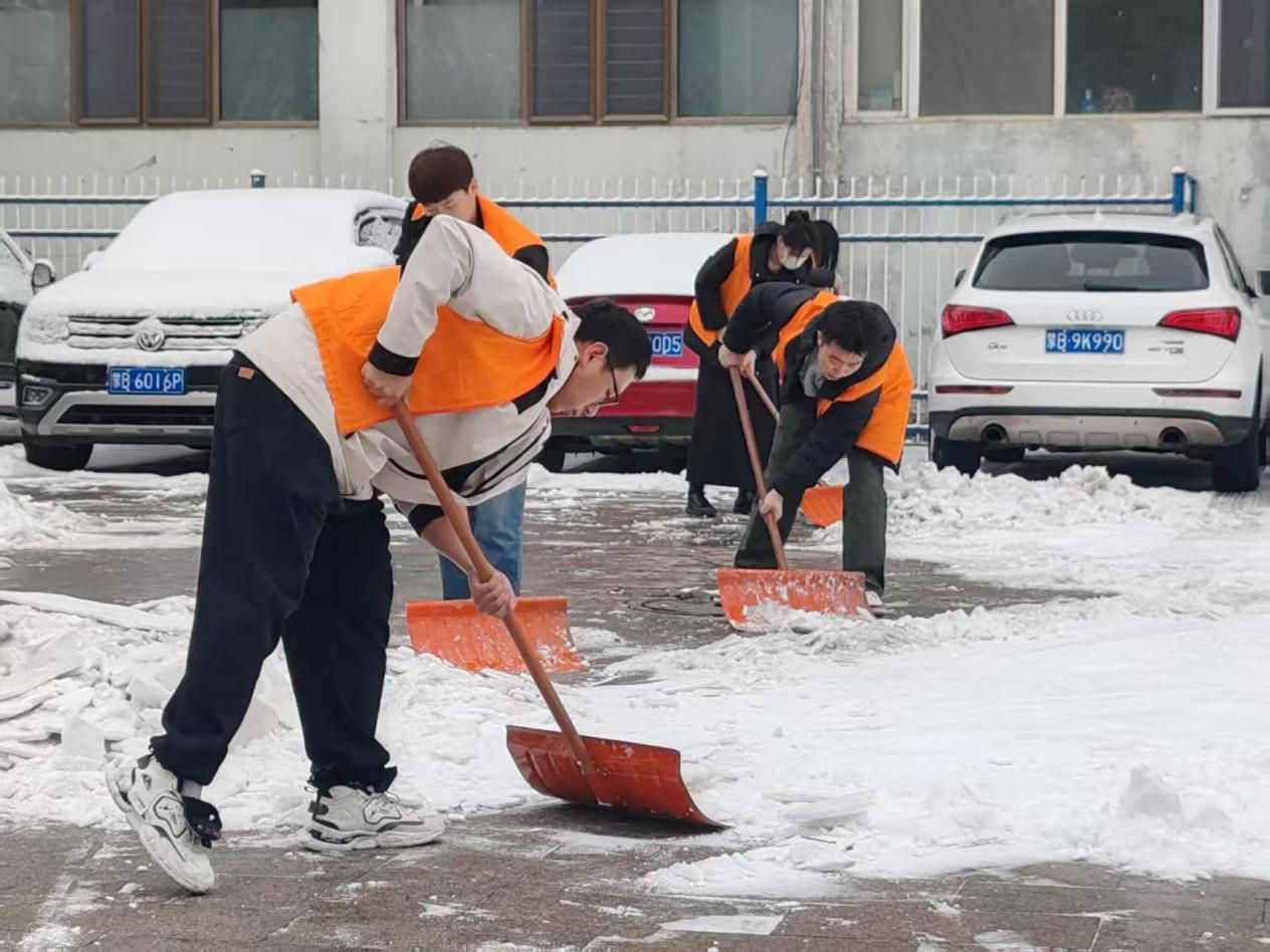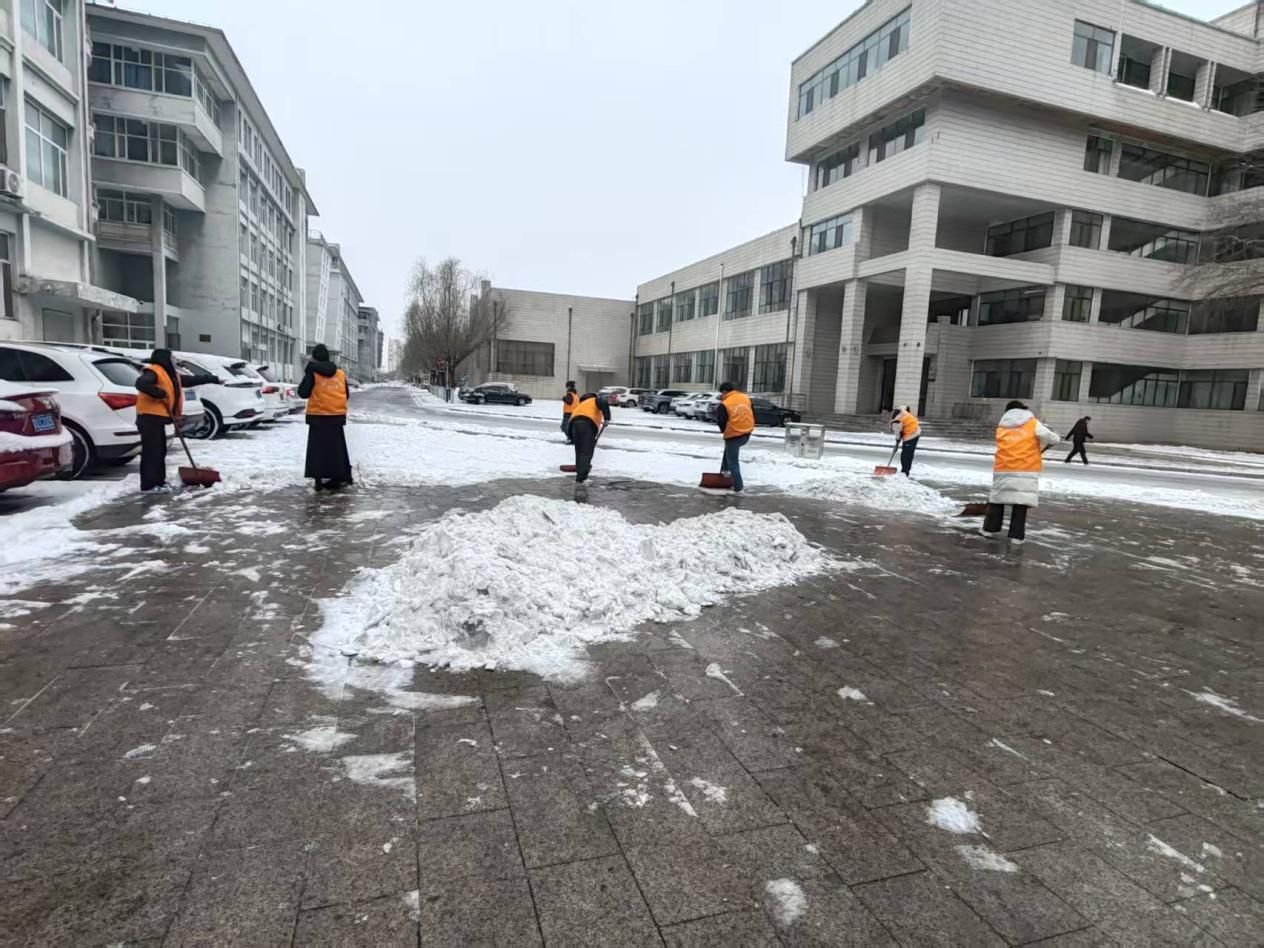 师生们齐心协力,默契配合,有的挥锹铲雪,有的挥扫清路,呈现出一派热火朝天的劳动景象,彻底清理了学院周边区域道路的冰雪,确保了师生的出行安全。
