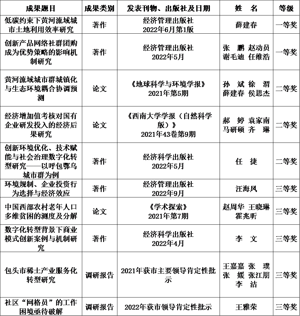 2023年12月5日,包头市第六届哲学社会科学优秀成果奖评选结果公示,金年会教师优秀成果获奖10项,其中一等奖2项、二等奖3项、三等奖5项。获奖名单见下图。