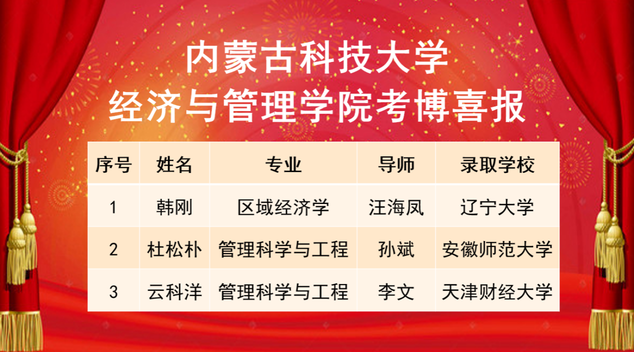 随着各大高校、科研院所博士研究生录取工作接近尾声,经过导师们的悉心指导和研究生的不懈努力,金年会2024届毕业生不负众望,共3名应届硕士研究生被录取为博士研究生。具体录取信息如下: