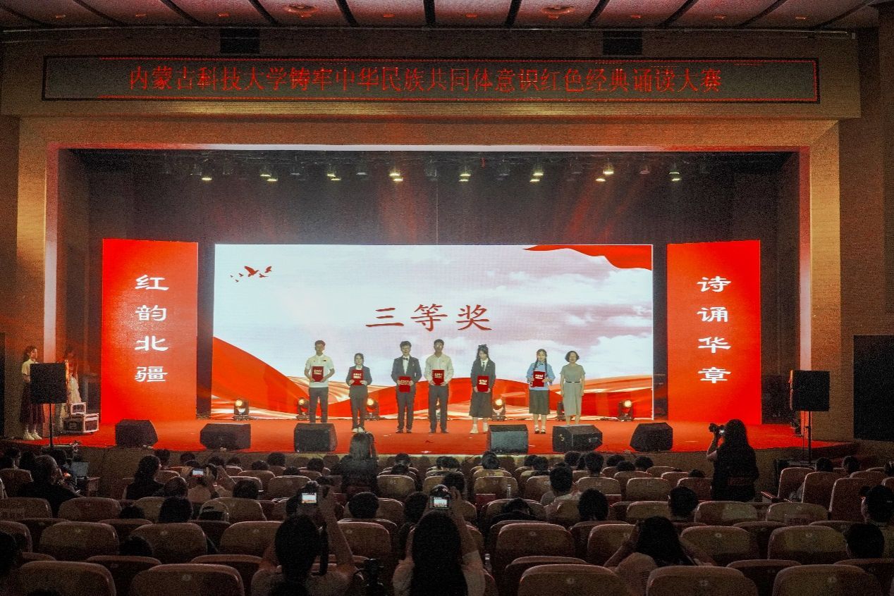 近日,金年会jinnianhuicom“红韵北疆 诗诵华章”铸牢中华民族共同体意识红色经典诵读大赛在校音乐厅举办。经过初赛、复赛层层选拔,共有11支队伍进入校级决赛。金年会2024级营销管理本科生杜文洁、张涛,2024级应用经济学研究生徐美彤分别获得一等奖、三等奖。