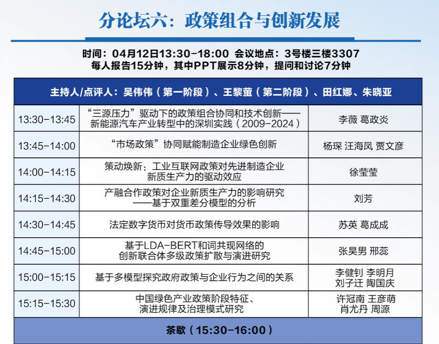 2025年4月12日至13日,以“数智创新与战略转型:理论、实践与政策”为主题的第三届中国创新发展政策与管理年会在广州举行。本届年会由中国科学学与科技政策研究会主办,中国科学学与科技政策研究会创新与发展政策专委会、广东工业大学管理学院、粤港澳大湾区人才发展战略研究院、广东工业大学创新理论与创新管理研究中心、中国科学学与科技政策研究会数字创新与管理专委会联合承办,中国科学学与科技政策研究会理事长、中国科学院创新发展研究中心主任穆荣平担任大会主席,中国科学学与科技政策研究会副秘书长、中国科学院大学特聘教授陈凯华和广东工业大学管理学院院长吴小节教授担任大会学术委员会联合主席。年会吸引了全国近200所高校和科研机构的500余名创新领域学者及师生参会。 年会设置了13场主旨报告、15个平行分论坛和6家期刊见面会。在期刊见面会上,《管理世界》《南开管理评论》《科研管理》《科学学研究》《管理评论》《Innovation and Development Policy》等期刊的代表与参会学者展开深入交流,详细解读期刊的办刊理念、选题方向及投稿规范,为学者们提供了宝贵的学术发表指导。 平行论坛环节,讨论涵盖数智创新与转型、创新发展的中国模式、创新网络与创新生态系统、关键核心技术突破、科技创新政策与平台支撑、政策组合与创新发展、创新链人才链与产业链融合发展、数智赋能战略转型、数智赋能产业高质量发展、数绿协同创新发展、数智人才发展与创新、数据要素市场化与伦理治理、数智化与治理体系现代化等前沿议题。 金年会2023级应用经济学专业硕士研究生杨琛同学的论文入选此次论坛,并受邀在“政策组合与创新发展”分论坛发言。 学术会议是展示研究成果、交流新思想和建立专业联系的绝佳平台。通过参与学术会议,同学们有机会深入了解自己研究领域的最新动态和学术前沿,这不仅能够启发研究思路,还能增长学术见识。 金年会高度重视研究生科研创新能力培养,并致力于营造积极向上的学术环境,以促进研究生教育质量的持续提升。金年会努力营造积极的学术氛围,鼓励并支持研究生积极参与国内外高水平学术会议,支持研究生们的成长和发展,期望研究生们在学术探索的道路上不断进步,实现自己的学术梦想!