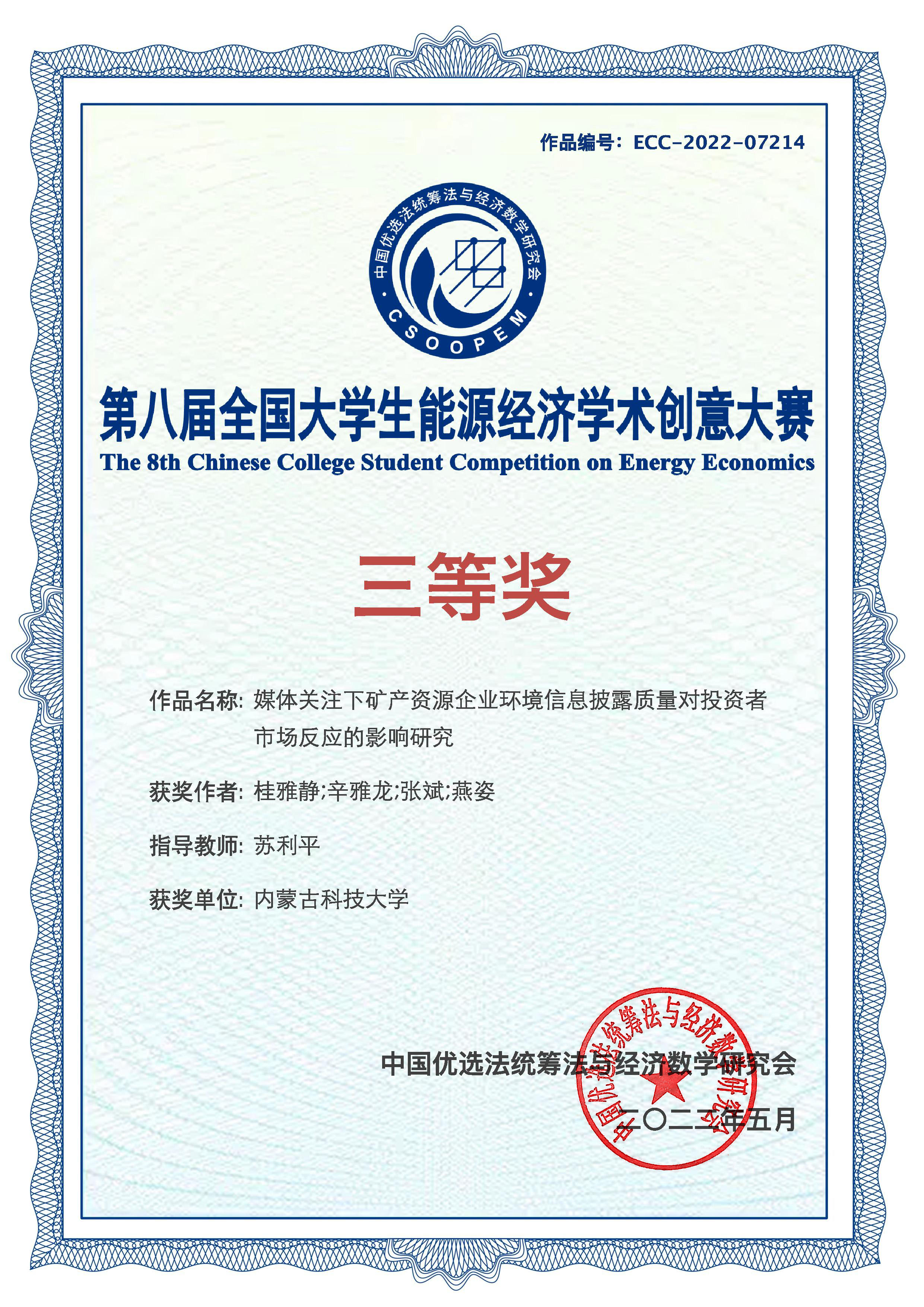 下一条:金年会诚信信誉至上师生荣获第八届全国大学生能源经济学术创意大赛第5赛区-大学生队三等奖