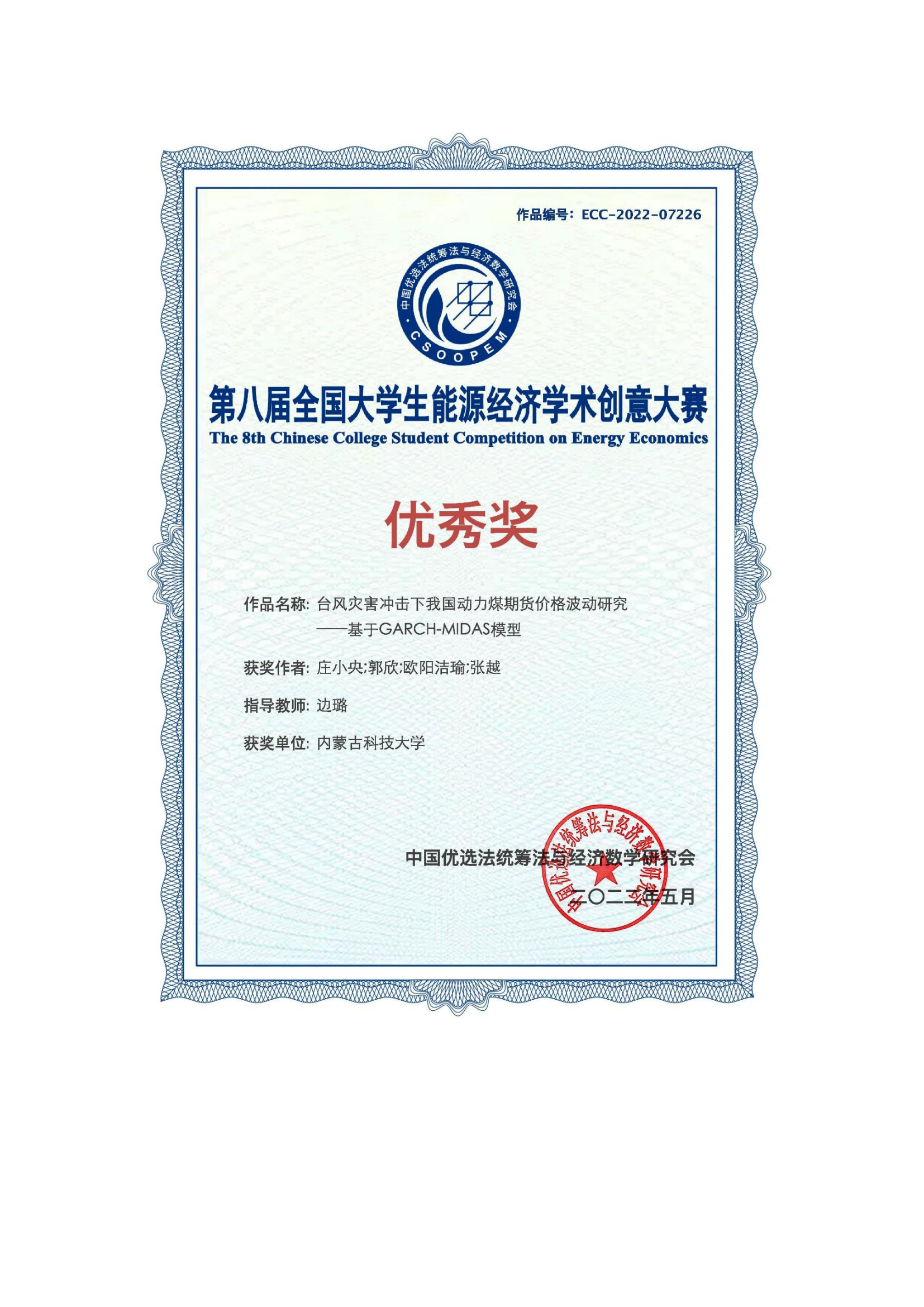 下一条:金年会诚信信誉至上师生荣获第八届全国大学生能源经济学术创意大赛 第5赛区-研究生队 二等奖