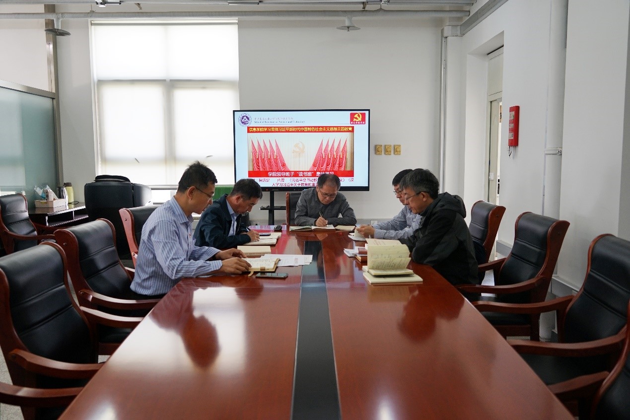学院班子成员按照党委统一安排分工分别组织了有关著作的领学和研讨交流。王月海书记领学党的二十大报告和新党章,马礼院长领学了《习近平著作选读》,陈卫副书记领学了《习近平新时代中国特色社会主义思想专题摘编》和《论党的自我革命》,鲁远耀副院长领学了《习近平总书记教育重要论述讲义》和《深入学习习近平总书记关于教育的重要论述》,段建勇副院长领学了《习近平关于北京工作论述摘编》。