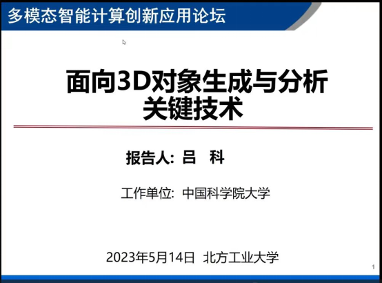 吕科老师做了题为《3D 对象分析与生成关键技术与应用》的报告。介绍了3D 对象在各个领域及实际生活中越来越被广泛应用的背景,探讨了3D 对象分析与生成中的相关技术、方法与应用。并对3D对象分析与生成的未来研究进行了展望。