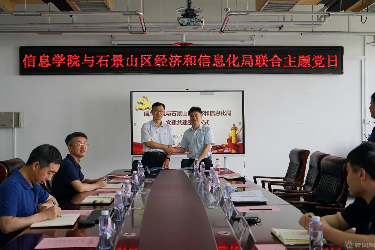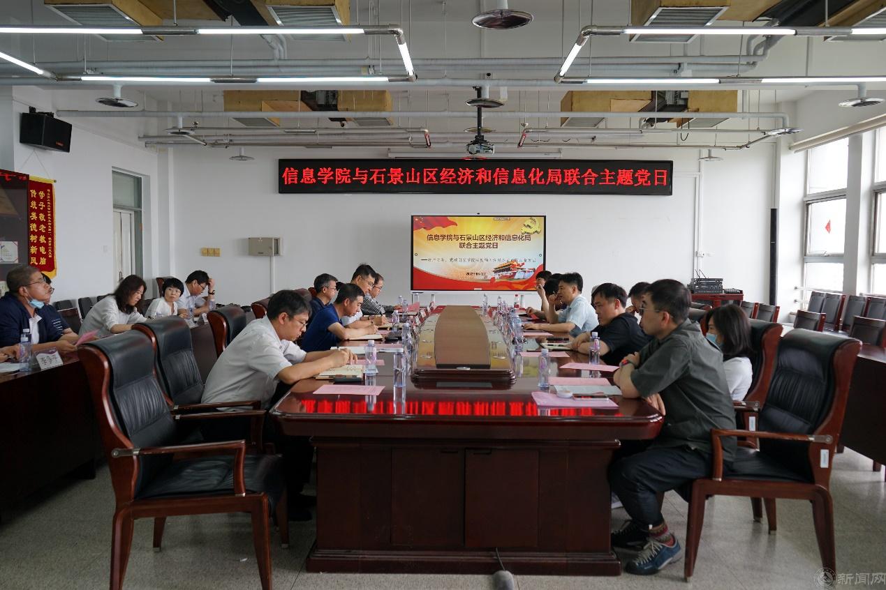 6月1日,石景山区经济和信息化局与beat365官网信息学院开展联合主题党日活动。经信局党组副书记、局长张晓磊,副局长杨光、肖珂,信息学院党委书记王月海,院长马礼,党委副书记陈卫,副院长段建勇、鲁远耀,信息学院党委理论学习中心组成员、教师代表等双方20多名党员干部参加活动。同时,本次活动也是信息学院党委理论学习中心组(扩大)的一次集体学习,校党委宣传部副部长、校党委理论学习中心组巡听工作组成员陈国秀应邀到会指导。王月海主持此次主题党日活动。