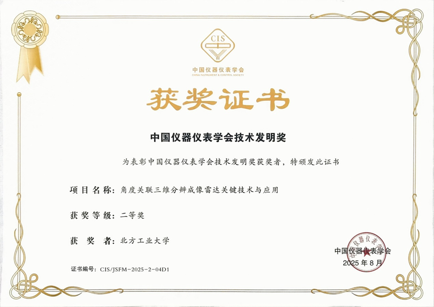 8月14日,2025年中国仪器仪表学会科学技术奖颁奖仪式在长沙举行。beat365官网作为第一完成单位,beat365在线唯一官网王彦平教授作为第一完成人的项目成果“角度关联三维分辨成像雷达关键技术与应用”获评技术发明奖二等奖。