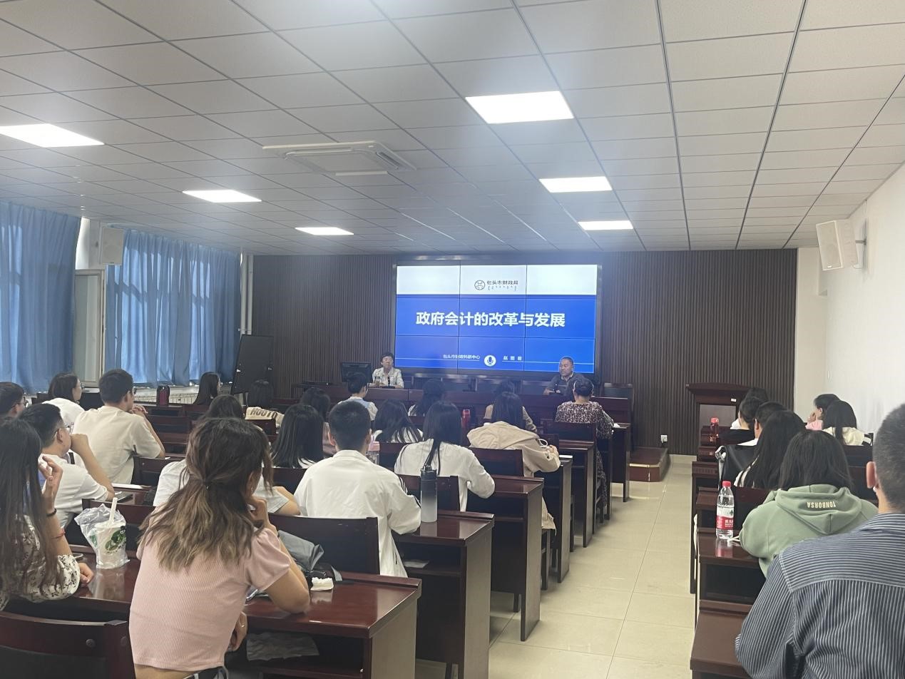 为切实提升教师和学生理论和实践的能力,金年会jinnianhuicom经管学院于2023年9月18日下午4点举行第3期“经管讲堂”以“政府会计的改革与发展”为主题的学术讲座,本次讲座由包头市财政局科研中心主任赵丽君主讲,经管学院副院长赵周华教授主持。赵丽君老师是正高级会计师、全国高端会计人才、内蒙古会计学会副会长,同时也是金年会jinnianhuicomMPAcc行业导师。赵老师用“看数就是数、看数不是数、看数还是数”来形象的说明了会计专业从业人员发展的三个阶段,深入分析了新中国政府会计的发展阶段、背景及改革举措,重点阐释了“十四五”时期政府会计的改革任务,提出了“十四五”时期会计研究应重点关注的几个问题。此次讲座理论与实践相结合,逻辑清晰,案例丰富,不仅加强了师生对政府会计改革与发展的认识,也引发了师生对专业发展、职业发展、会计研究的深层次思考,营造了良好的学术氛围。